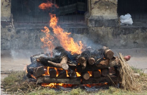 4. Queima do corpo: O corpo é queimado em uma pira funerária.